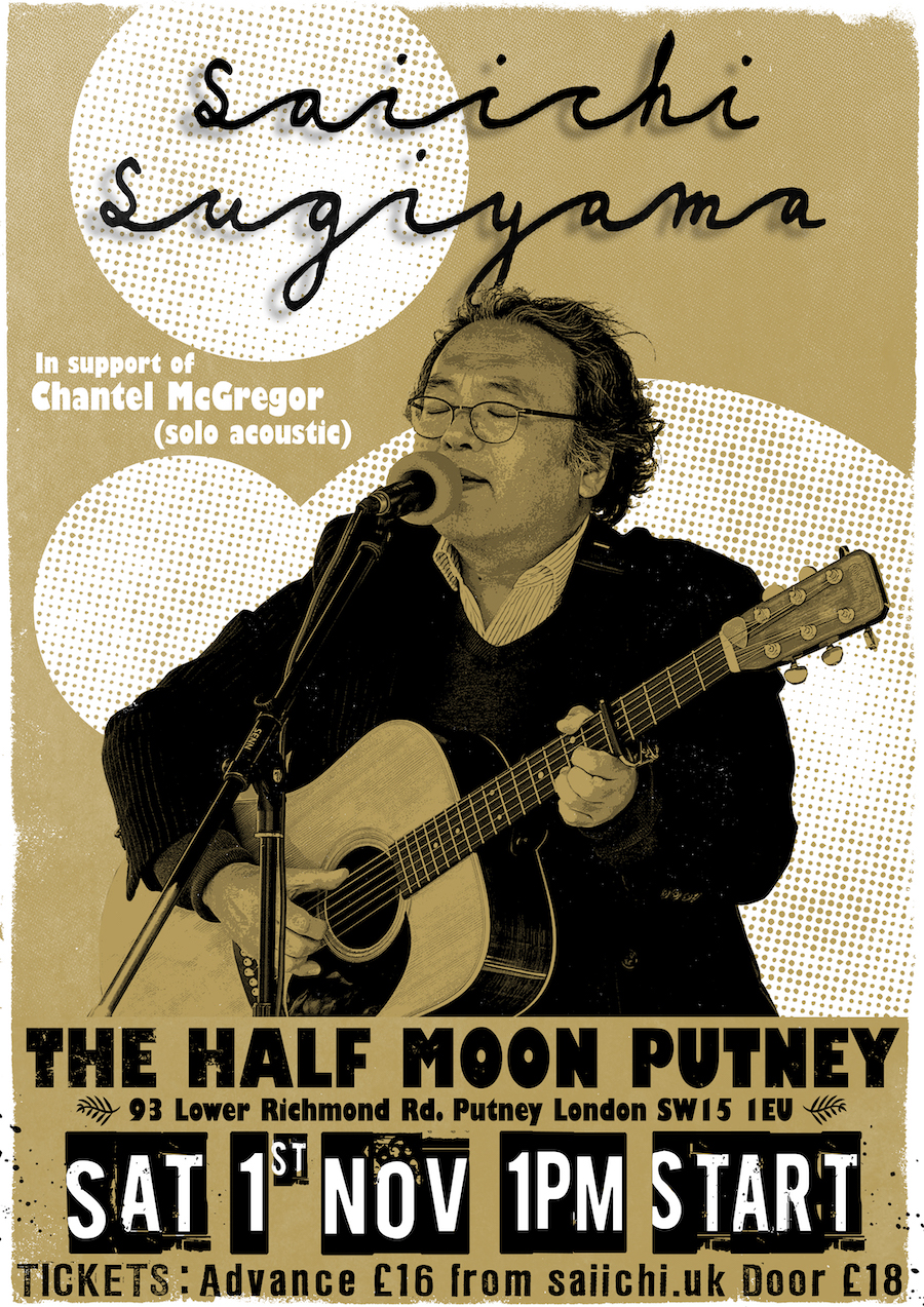 A Ticket for Chantel McGregor Solo Acoustic with Saiichi Sugiyama solo acoustic supporting at the Half Moon Putney – 1pm on Saturday 1 November 2025. Saiichi will be on stage at 1pm sharp!